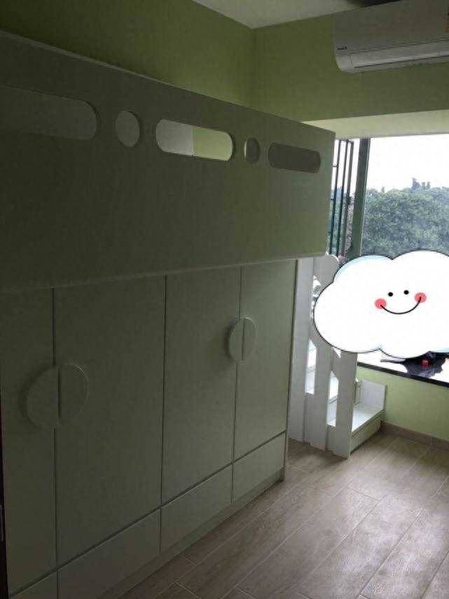 次卧作为儿童房,采用下面是衣柜、上面是床的设计,但个人认为这面积其实也还可以。