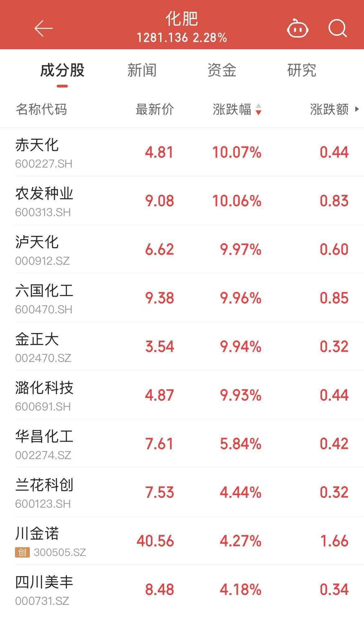 3月16日,化肥板块盘初逆市上扬,赤天化、泸天化、六国化工、金正大等多股涨停,华昌化工、兰花科创、川金诺等跟涨。消息面上,中东紧张局势难言降温,承载全球约33%化肥贸易流量的霍尔木兹海峡运输受阻。